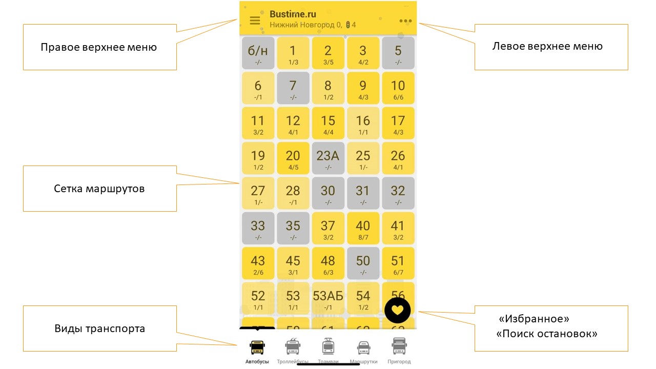 «Bustime» - это мобильное приложение. Оно позволяет отслеживать общественный транспорт, получать прогнозы о его прибытии, а также ориентироваться на остановках и во время поездок. Предоставляемая информация основана на данных спутниковой навигации ГЛОНАСС/GPS.