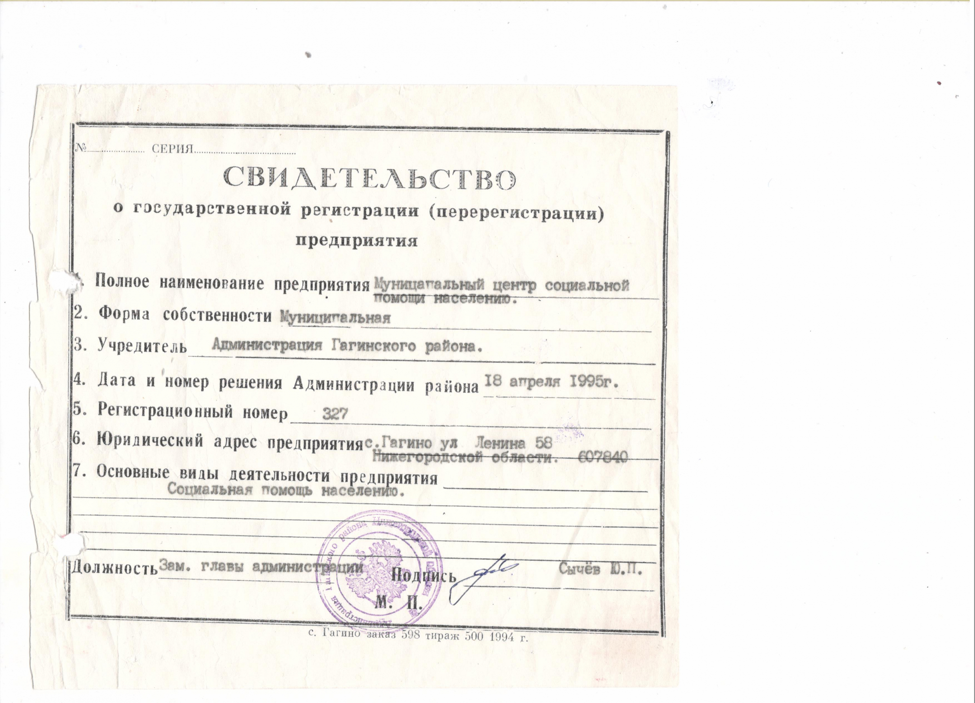 - Адрес:607870, Гагино село, Гагинский район, Ленина улица, д.58