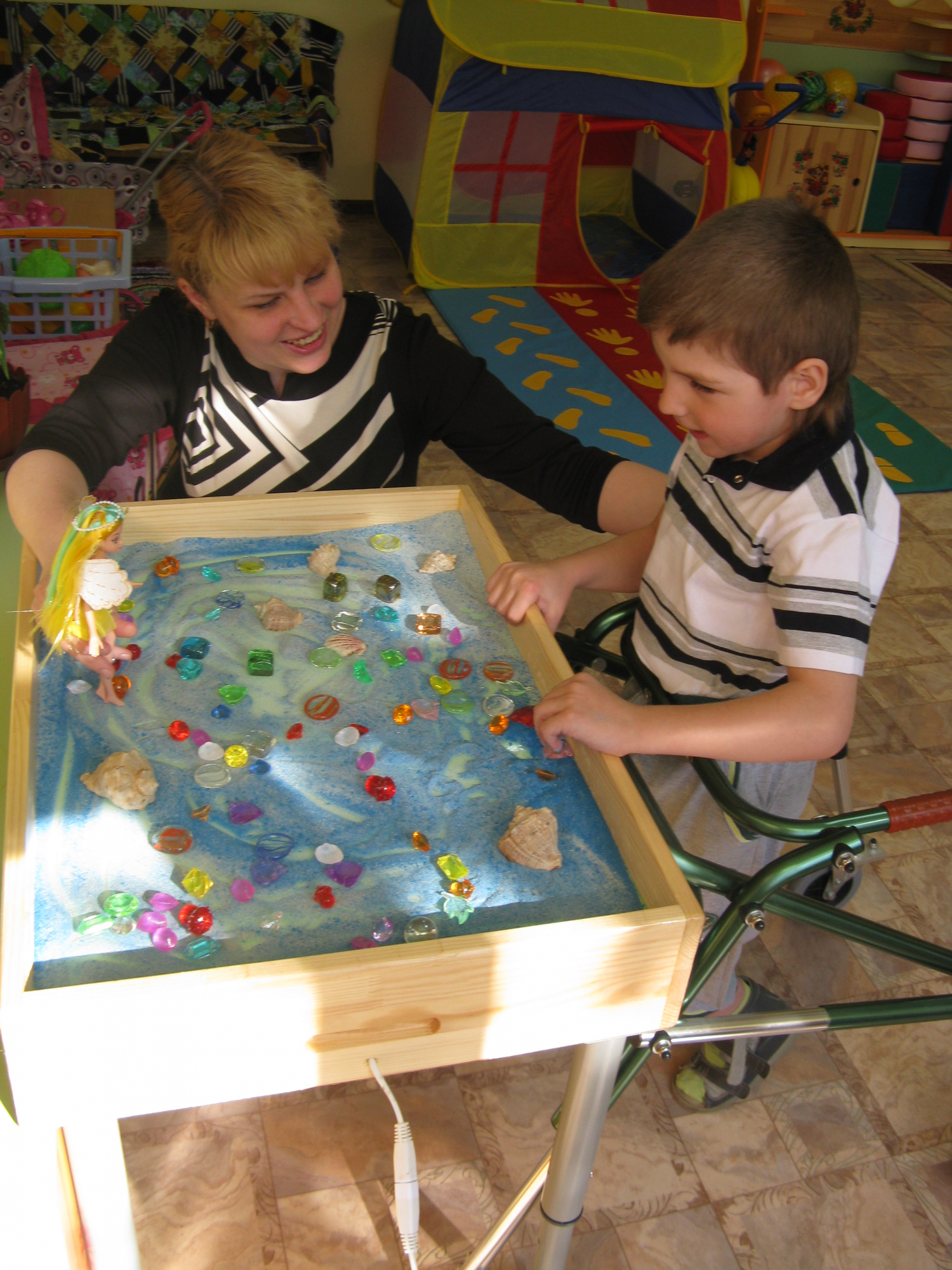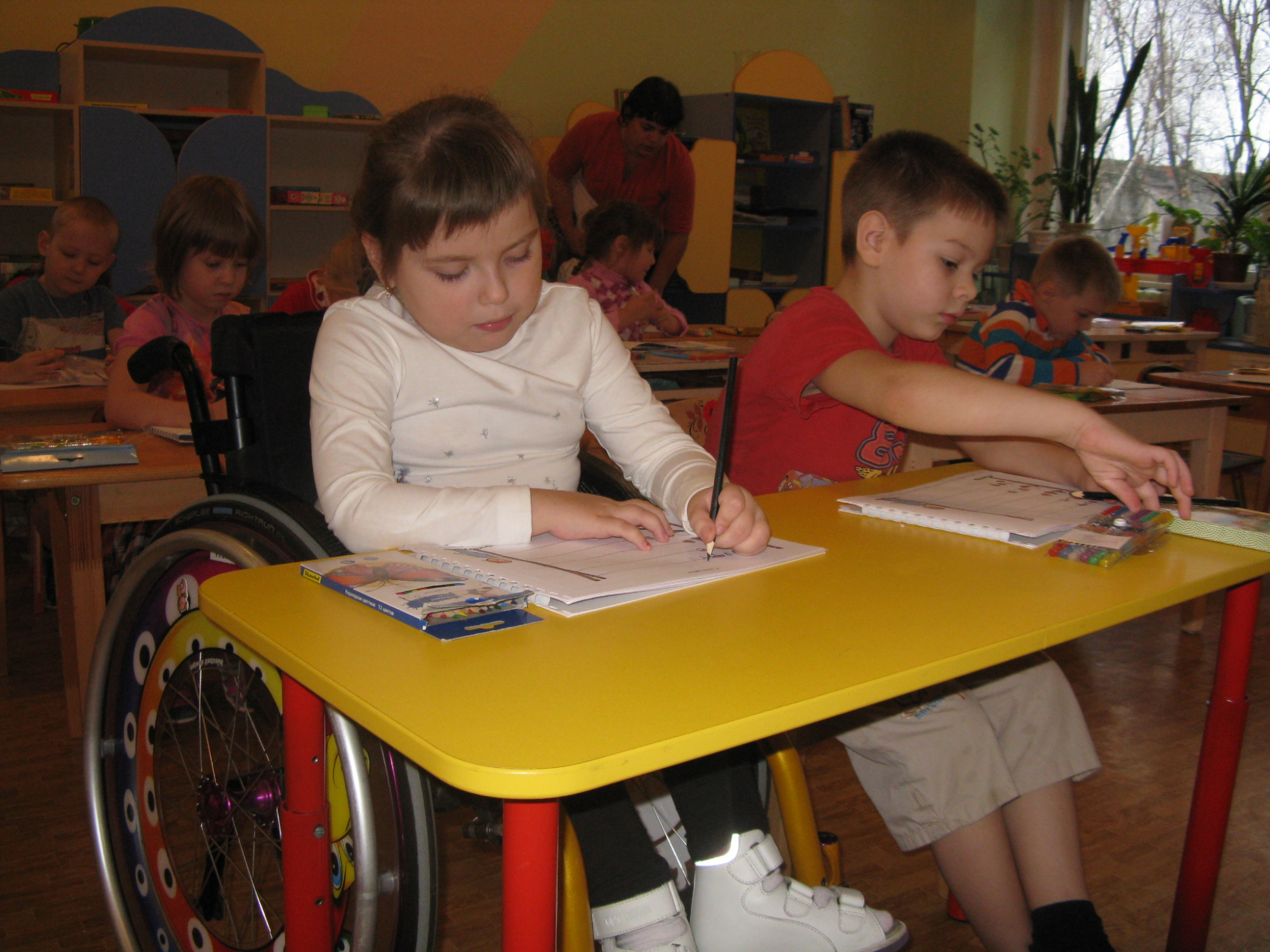 В учреждении работают две группы кратковременного пребывания компенсирующей направленности. Дети -инвалиды и дети с ОВЗ посещают эти группы в сопровождении родителей. С ними проводятся коррекционно-образовательные занятия в групповой и индивидуальной форме. С детьми работают воспитатели, учитель-дефектолог, учитель-логопед, педагог-психолог, музыкальный руководитель. Пребывание ребенка с 8.00 до 13.00 построено по режиму. Для работы с детьми с ОВЗ в учреждении большой подбор специализированных игр, игрушек, обучающих программ. В учреждении создан целый блок оборудованных помещений: групповые комнаты, кабинеты специалистов, сенсорная комната. Чтобы получить услугу, необходимо через МФЦ подать заявление на очередь в детский сад.