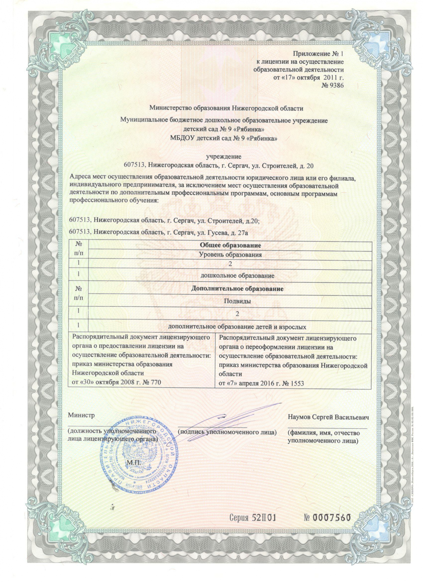 - Адрес:607513, Сергач, Сергачский район, Строителей улица, 20