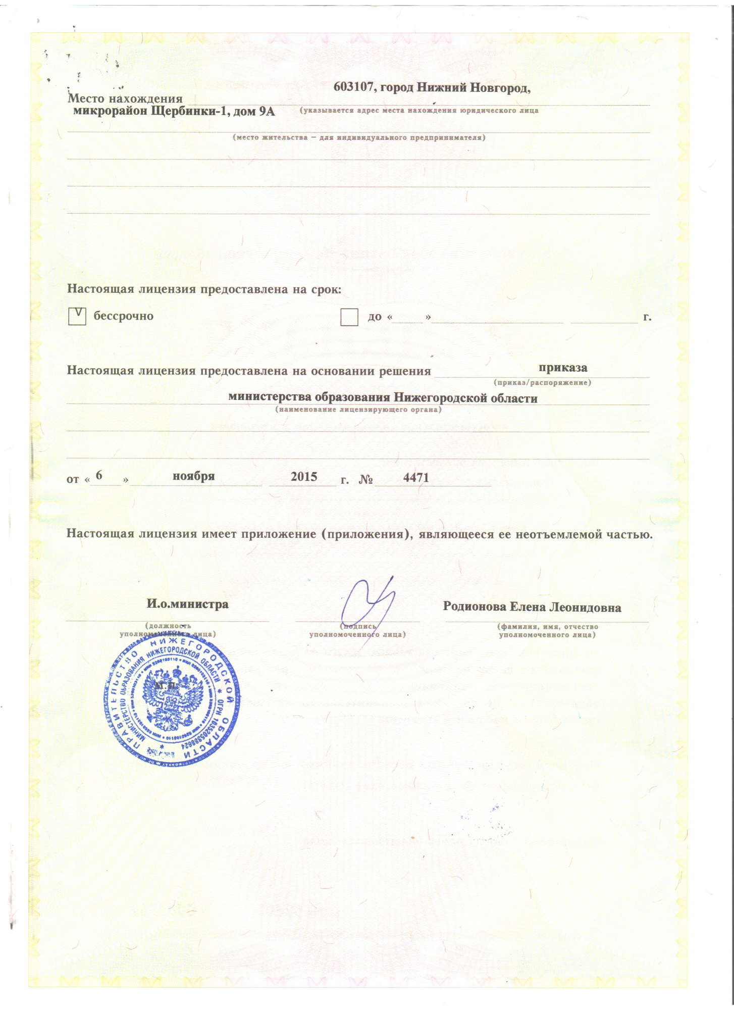 - Адрес:603107, Нижний Новгород, Щербинки 1 микрорайон, 9А