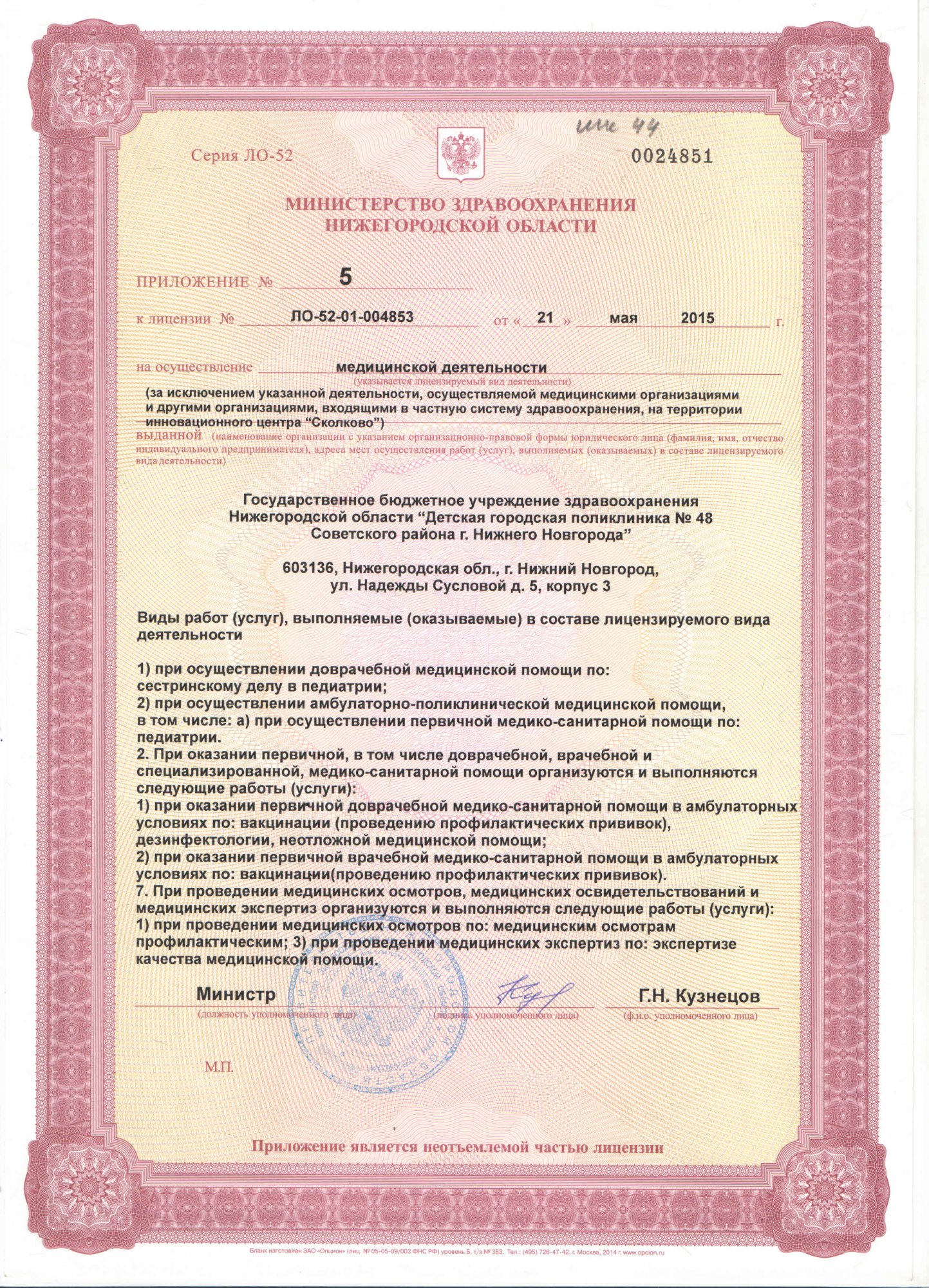 - Приложение к лицензии на осуществление медицинской деятельности 5