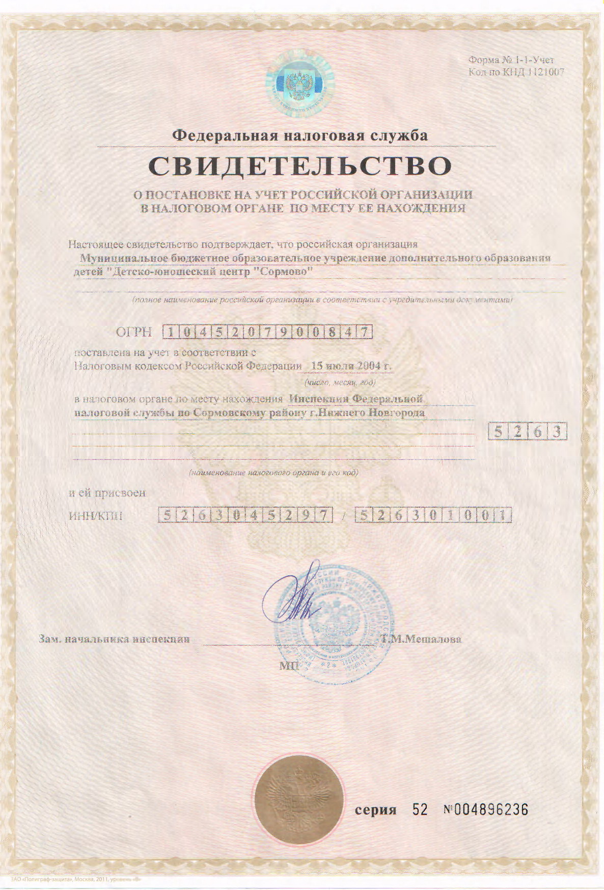 - Свидетельство о постановке на налоговый учет