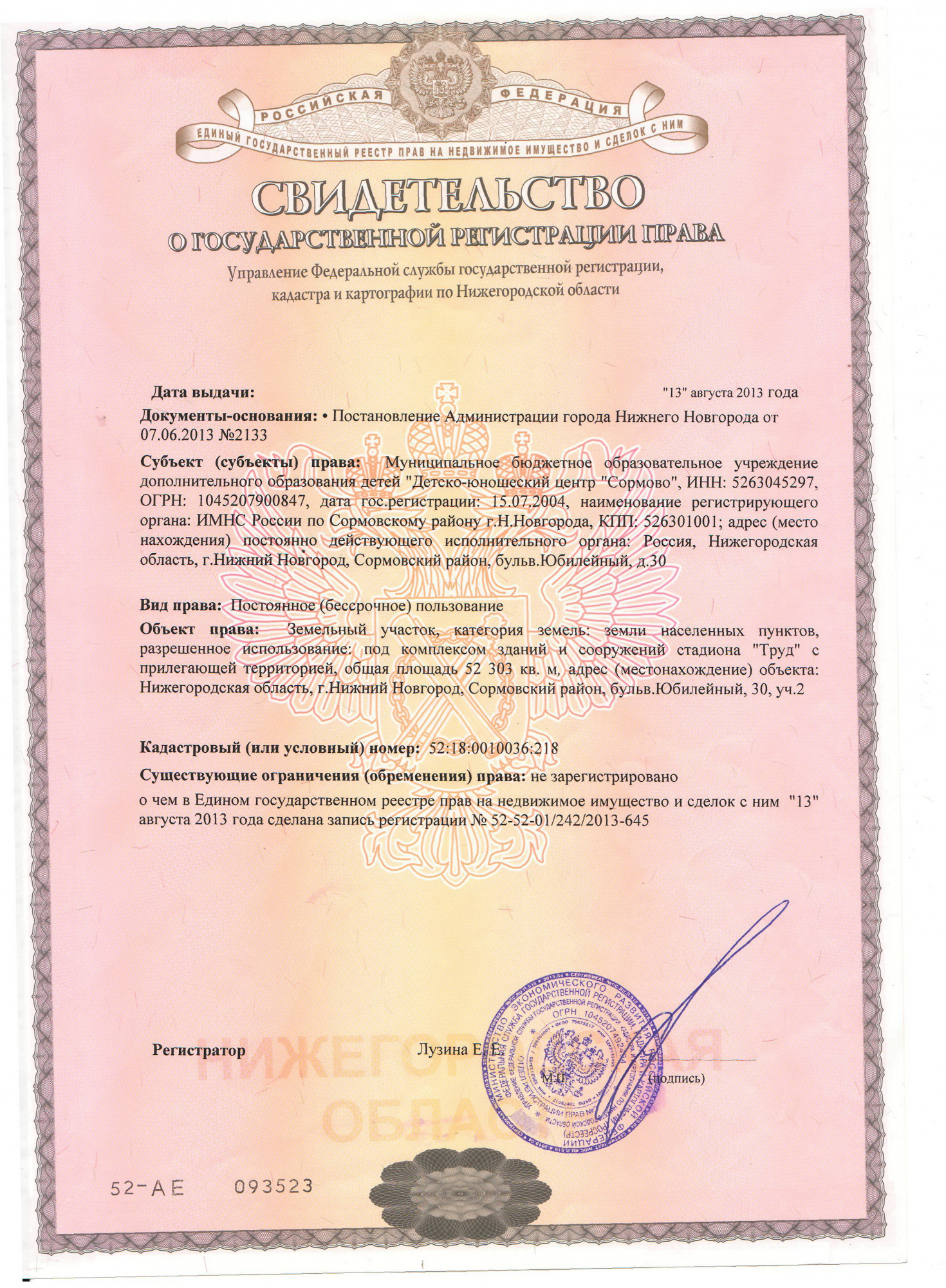 - Адрес:603094, Нижний Новгород, Юбилейный бульвар, 30