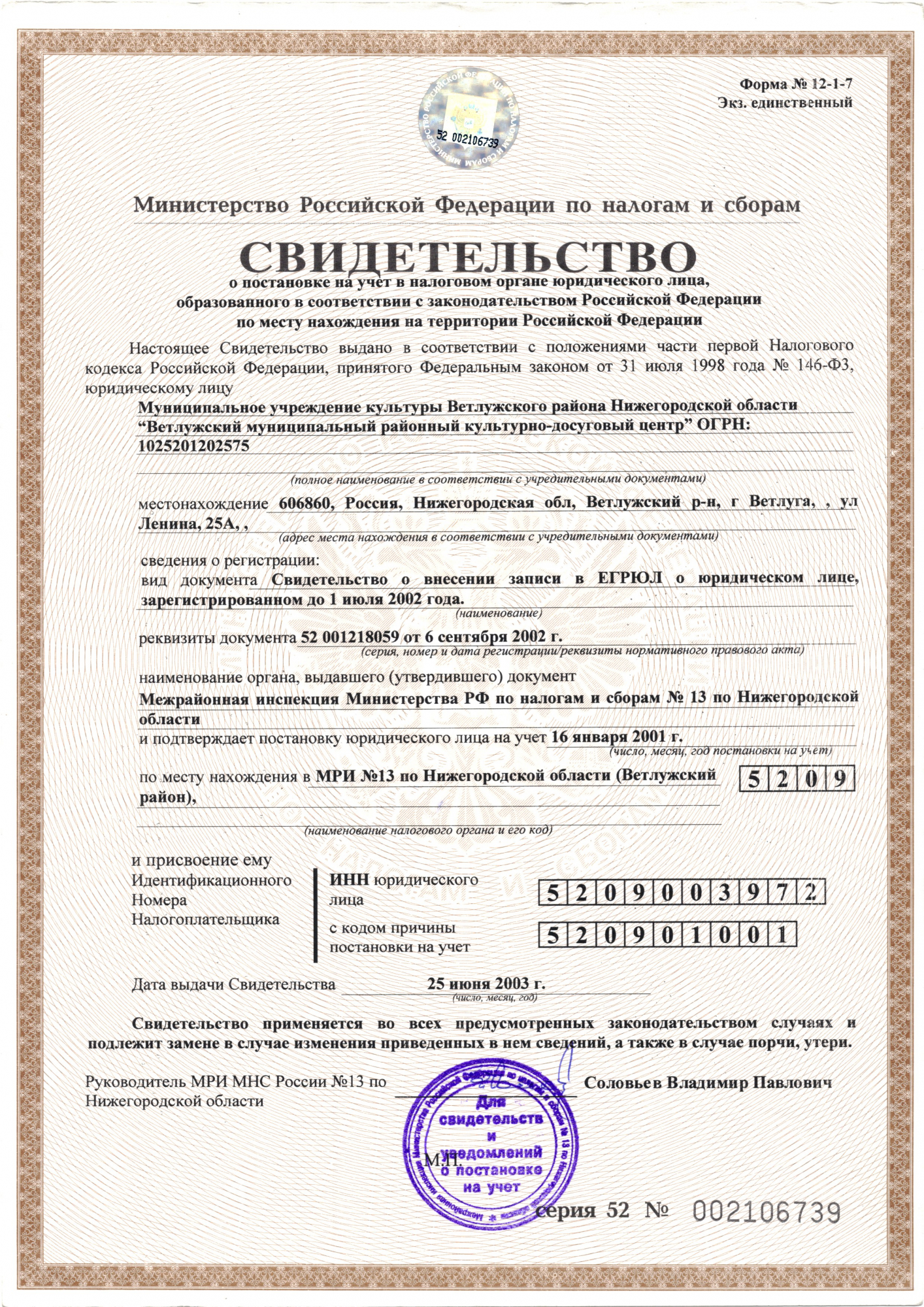 - Адрес:606860, Ветлуга, Ветлужский район, Ленина улица, 25а