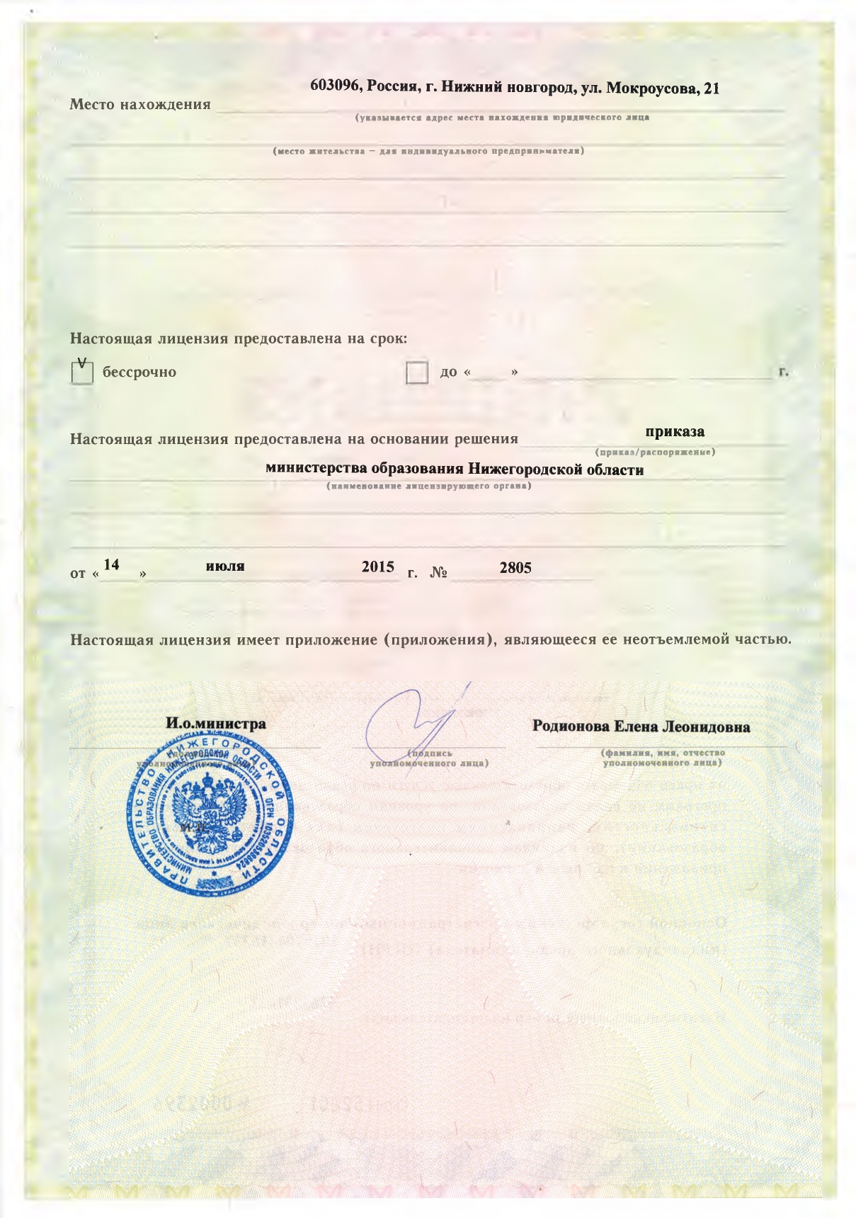 - Адрес:603096, Нижний Новгород, Мокроусова улица, 21