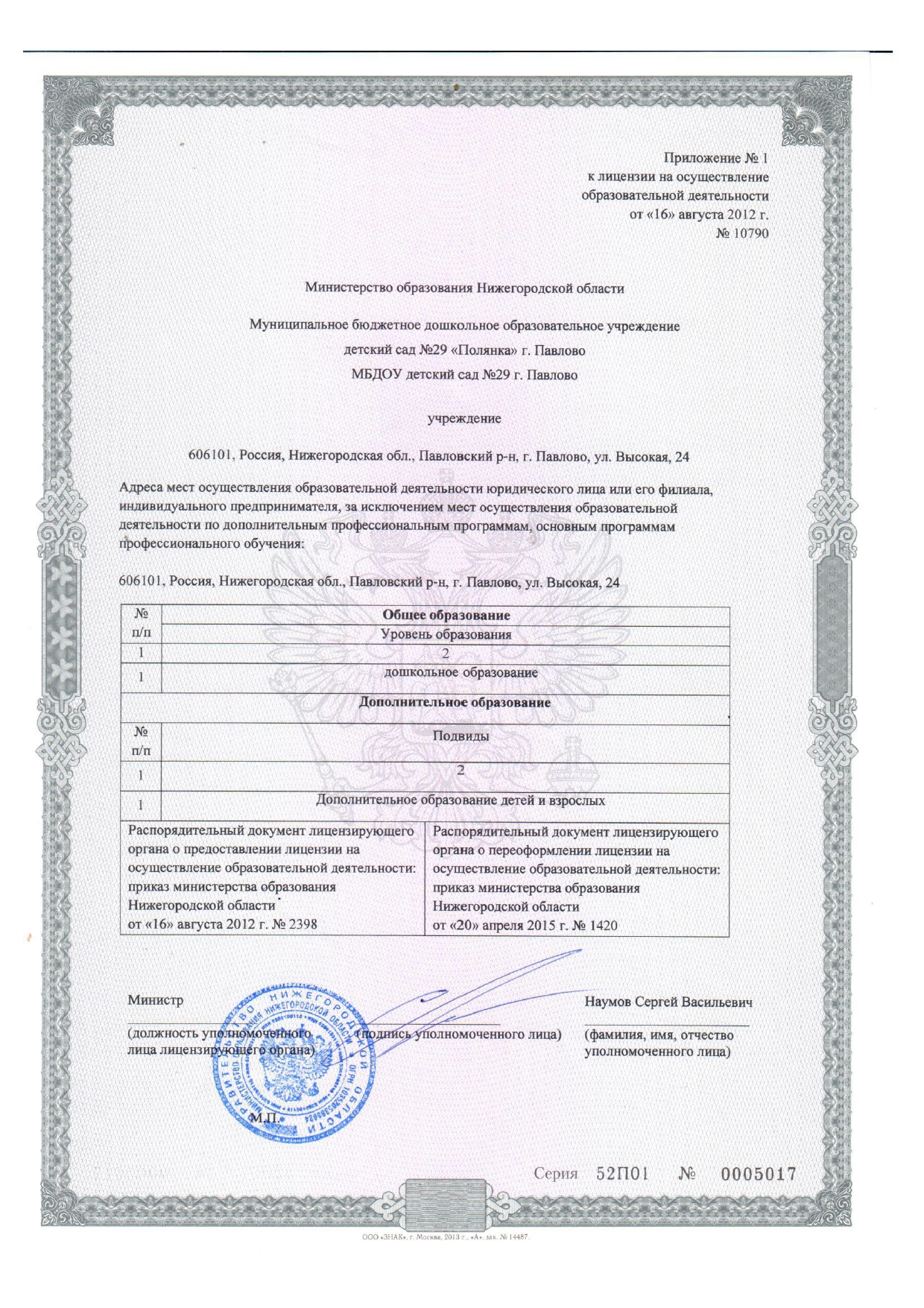 - Адрес:606101, Павлово, Павловский район, Высокая, 24
