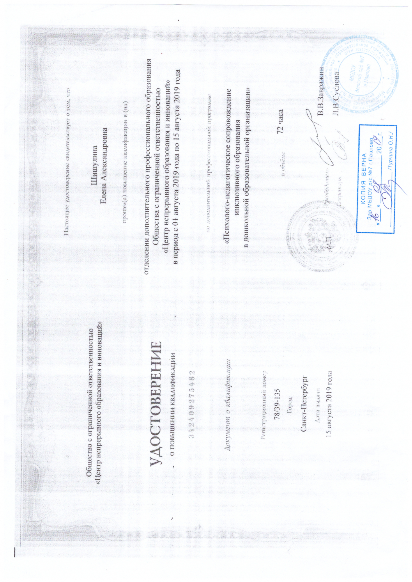 "Психолого-педагогическое сопровождение инклюзивного образования в ДОУ" август 2019 г.