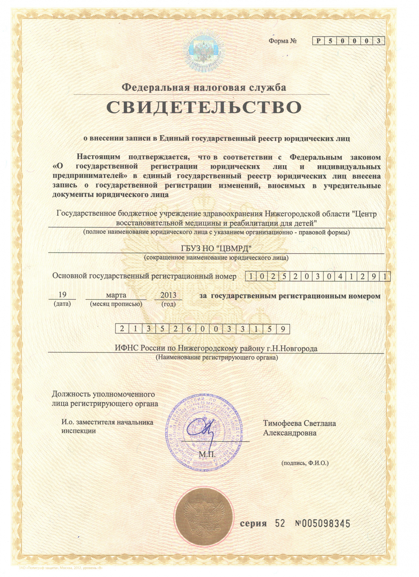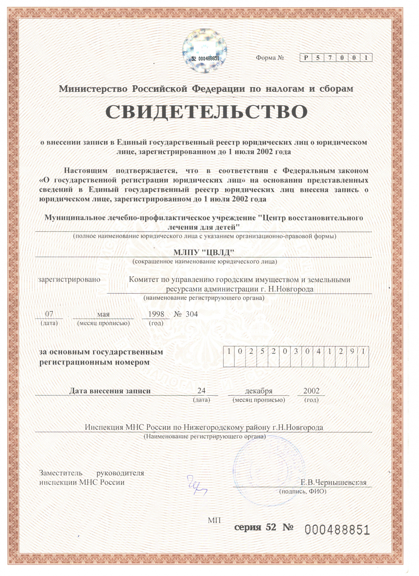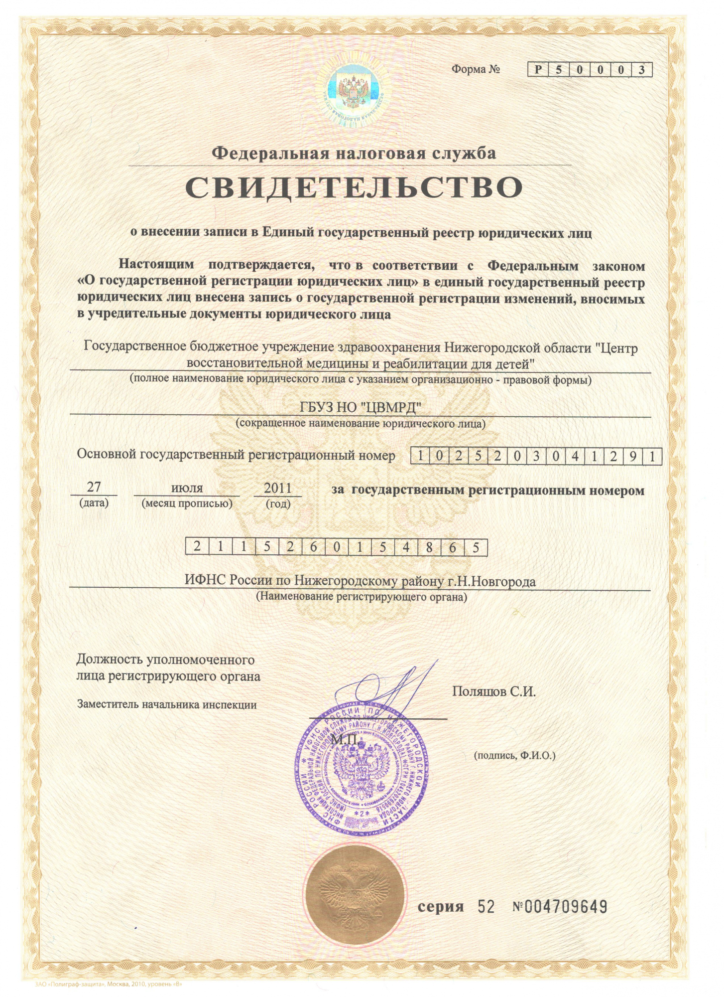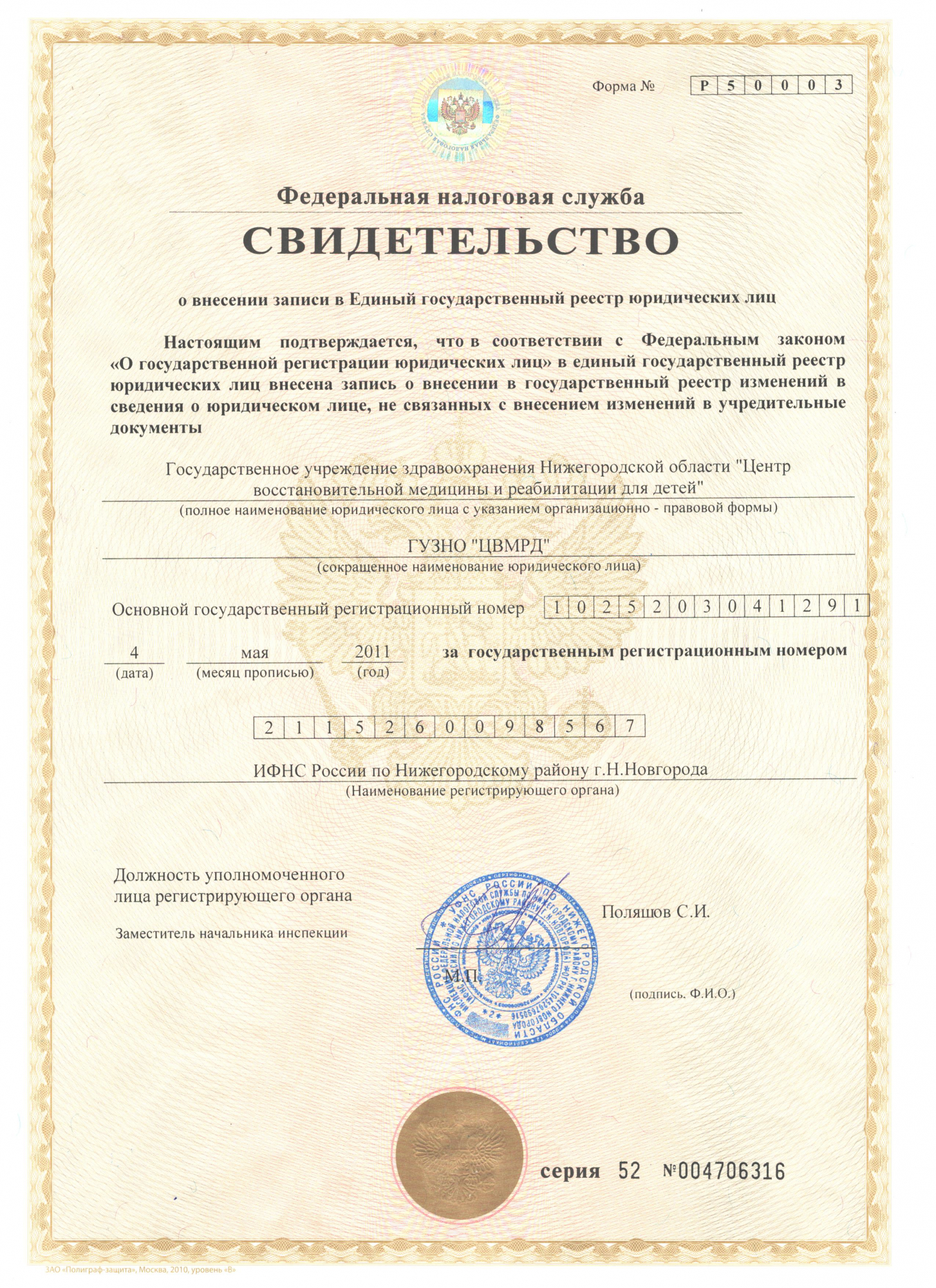 - Свидетельство о внесении записи в ЕГРЮЛ